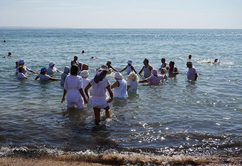 In most localities, the bath is taken at midnight, to mark the beginning of the 29th of August with a soul-cleaning bath. Usually, people do not wear the bikinis and bathing suits we are used to seeing, currently. People like to dress up as in the past. The bathing suits, for both men and women, will cover the legs, and normally, no one is shirtless. Night dresses may also be used to go to the beach, with some putting bonnets on, to protect their hair from the seawater. Men will probably wear white pants and sleeveless white shirts.