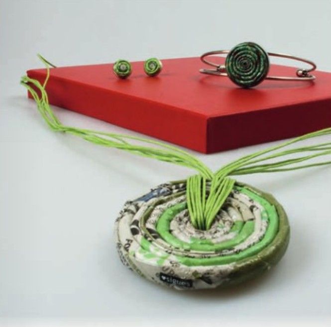 The contrast of the white background with black letters was always fascinating for Sílvia: “I believed it could result in something beautiful in another context. I love to use The Portugal News as this paper has lot of colours, and I don’t use extra colouring for my jewellery pieces; I look for pages that match the colour scheme for the piece I’m creating.”